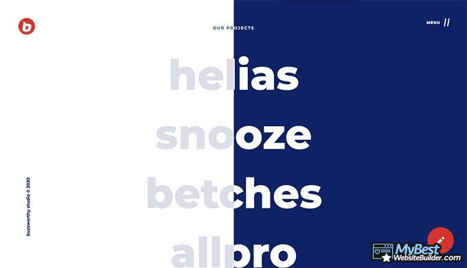 Buzzworthy Studio là một đại lý tiếp thị. Thiết kế trang web của nó là công phu, để nói rằng ít nhất, nhưng theo cách tốt nhất có thể. Mặc dù là một đại lý tiếp thị, bất kỳ ai cũng có thể lấy cảm hứng từ lựa chọn thiết kế mẫu portfolio tương tác này và sử dụng điều tương tự cho các trang web portfolio cá nhân của riêng họ.