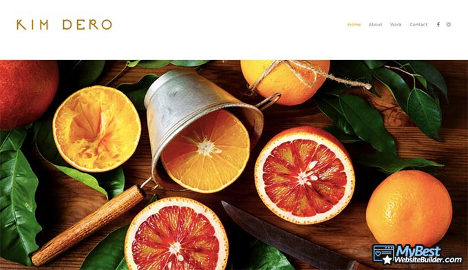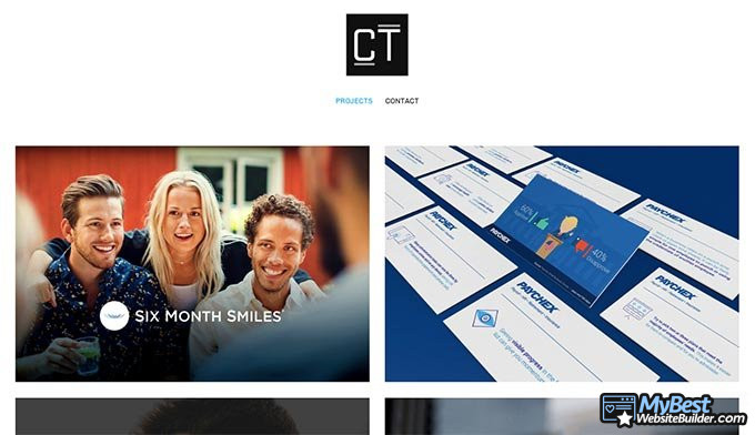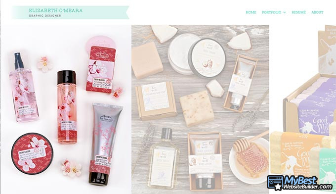Thiết kế đặc biệt này chào đón du khách với một băng chuyền có thể cuộn theo chiều ngang, trưng bày tác phẩm của tác giả. Trong khi các thiết kế theo chiều ngang thường không được khuyến khích, lizzybdesign.pixpa.com là một ví dụ về cách thực hiện đúng.