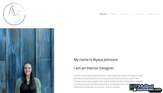 Allysa Johnson là một nhà thiết kế nội thất, và giới thiệu tác phẩm của mình trên portfolio trực tuyến cá nhân của riêng mình. Mặc dù trang web không nhất thiết phải hấp dẫn trực quan khi lần đầu tiên truy cập trang chủ, nhưng khi bạn xem qua tác phẩm của bà Johnson, nó sẽ trở nên hấp dẫn và thú vị hơn nhiều.