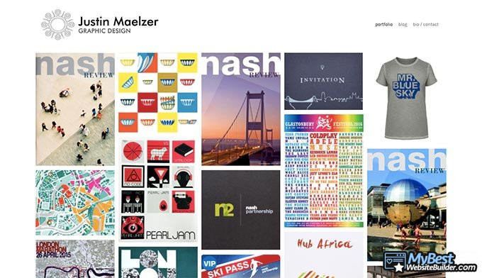 Nếu bạn đã bắt đầu nhận thấy xu hướng với Pixpa, bạn đã đúng - có một xu hướng ở đây. Tuy nhiên, các trang web Pixpa là những ví dụ tuyệt vời về một phiên bản rất đơn giản nhưng hấp dẫn của portfolio trực tuyến sẽ như thế nào. Điều tương tự cũng áp dụng cho justin-maelzer.pixpa.com - công việc từ nhà thiết kế đồ họa này rất dễ xem, so sánh và tương phản.