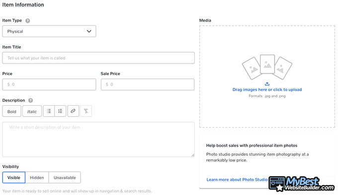 Nếu bạn quyết định rằng bạn muốn tạo một cửa hàng trực tuyến, tất cả những gì bạn cần làm là nhấp vào “Trang” và chọn “+”. Sau đó chọn “Trang sản phẩm” và bấm vào “Thêm sản phẩm vào Cửa hàng”.