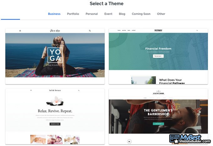 - Kinh doanh - mẫu website cho nhà hàng, tiệm cắt tóc, phòng tập yoga, dịch vụ tài chính, đổi mới, v.v.