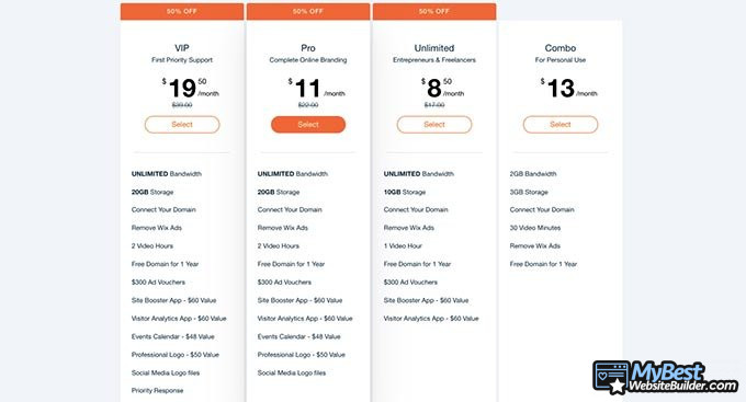 Nói về điều này, hãy kết thúc hướng dẫn dùng Wix này bằng cách xem xét các kế hoạch giá rất giống nhau như vậy.