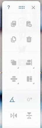 Thanh công cụ này cho phép bạn sao chép và đặt, sắp xếp và điều chỉnh các yếu tố khác nhau, thiết lập các vị trí, góc cụ thể, v.v. Các tùy chọn mà bạn sẽ có phụ thuộc vào chính xác những gì bạn đang chỉnh sửa trên chính trang web đó.