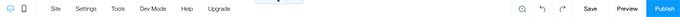 Trên đầu trang, bạn sẽ thấy thanh công cụ chính. Bạn sử dụng nó để điều hướng trang web của mình, chuyển đổi giữa chế độ xem trên máy tính để bàn và thiết bị di động, truy cập các công cụ, các cài đặt và chế độ phát triển, xem trước và công bố bất kỳ thay đổi nào bạn đã thực hiện cho trang web.