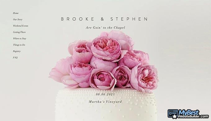 RSVPs, biểu mẫu liên hệ, phần “Giới thiệu” và “Thông tin”, phòng trưng bày - hầu hết các tính năng mà bạn yêu cầu đều khá đơn giản và dễ hiểu. Chà, “hầu hết” là từ khóa ở đây - bạn có thể phải vật lộn một chút để tìm một công cụ xây dựng website có tính năng RSVP đầy đủ chức năng, chẳng hạn như vậy.