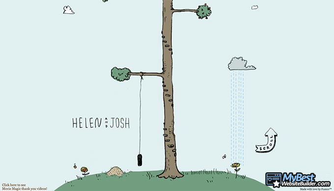 Không nghi ngờ gì, đây là một trong những ví dụ về website cưới thú vị và vui vẻ nhất hiện có. Website không có các phần riêng biệt, mà thay vào đó là trải nghiệm có thể cuộn tương tác - khi bạn “leo lên cao”, ngày càng có nhiều thông tin được tiết lộ. Tuyệt vời!
