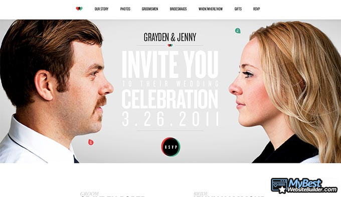 Trong khi website cưới cụ thể này chứa rất nhiều thông tin bằng văn bản trên trang nhất, hình ảnh chỉ đơn giản là tuyệt đẹp. Nó chắc chắn là một trong những ví dụ về website cưới tốt nhất hiện có.