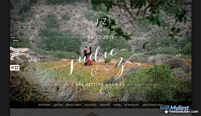 Một trong những website chính thức hơn trong danh sách này, judieandz.com có một hào quang của sự chuyên nghiệp bao quanh tất cả. Có vẻ như website được tạo ra bởi các chuyên gia tạo website thực tế - cho biết, đó cũng là một trong những ví dụ website cưới tốt hơn ngay cả đối với những người đang tìm kiếm website của riêng họ.