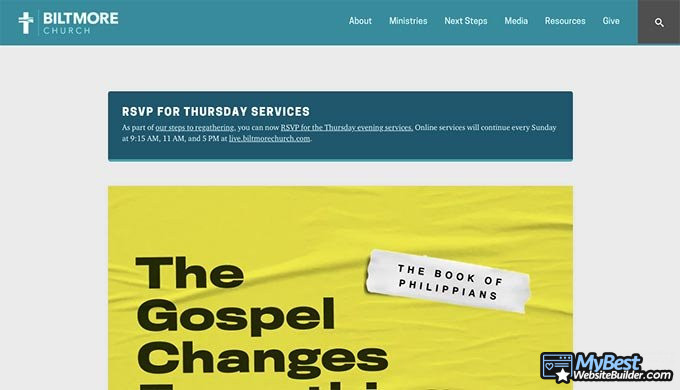 Biltmore Church sở hữu một trong những website nhà thờ đơn giản nhất trong danh sách này. Đây là một trong những ví dụ tốt nhất về cách bạn có thể tạo một website nhà thờ rất đơn giản, không có bất kỳ cửa sổ bật lên ưa thích hoặc các thủ thuật giao diện nào khác.