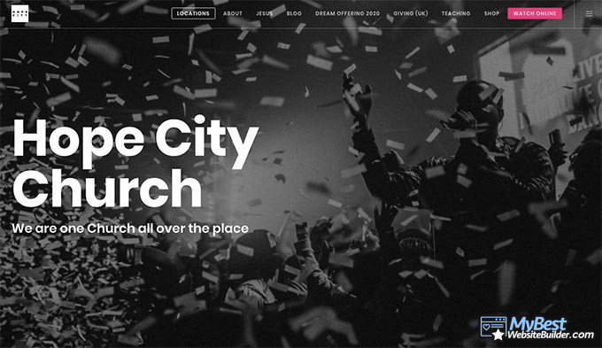 Hope City Church tuyệt vời vì một thiết kế hoàn toàn tuyệt đẹp. Đây cũng là một website đặc biệt, vì nó được thiết kế với WordPress - đó là một điều rất hiếm! Tuy nhiên, nó cho thấy - nền tảng này cực kỳ thú vị để khám phá và chắc chắn có thể được gọi là một trong những website nhà thờ tốt nhất.