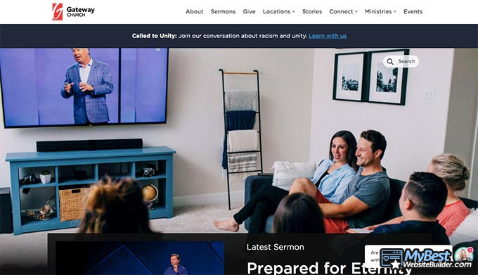 Gateway Church là một ví dụ rất đầy đủ thông tin về thiết kế website nhà thờ. Nó dường như xâu chuỗi một dòng mỏng cung cấp gần như quá nhiều thông tin cho khách truy cập trên trang đầu của nó, nhưng vẫn "vừa đủ" - tuy nhiên, nó cũng chứa một số tài nguyên khác mà bạn có thể truy cập.