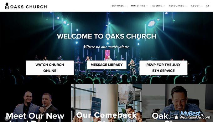 The Oaks Church tự hào có một thiết kế website rất đẹp - trang chủ được phân chia thành các "thẻ" khác nhau, sau đó dẫn bạn đến một số thông tin khác, tùy thuộc vào chủ đề. Đây là một website có cảm giác khá hiện đại - chắc chắn là một trong những website nhà thờ hàng đầu!
