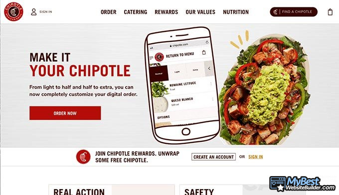 Đương nhiên, Chipotle là một thương hiệu rất nổi tiếng. Website của họ đại diện cho khía cạnh chuyên nghiệp của thế giới các website thực phẩm - thật lòng mà nói, đó là một nơi tuyệt vời để tìm kiếm nguồn cảm hứng, vì công ty đứng đầu trò chơi.